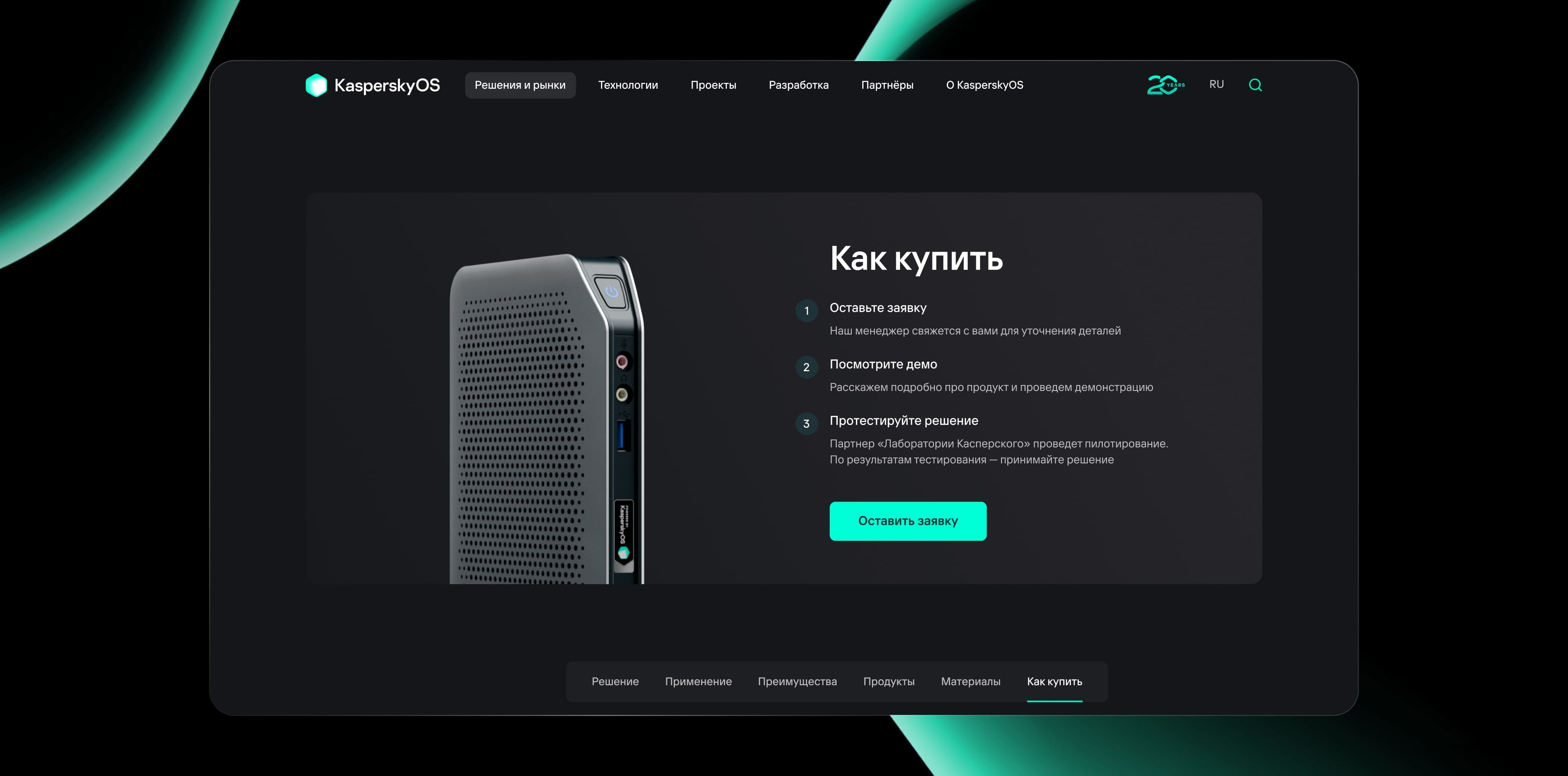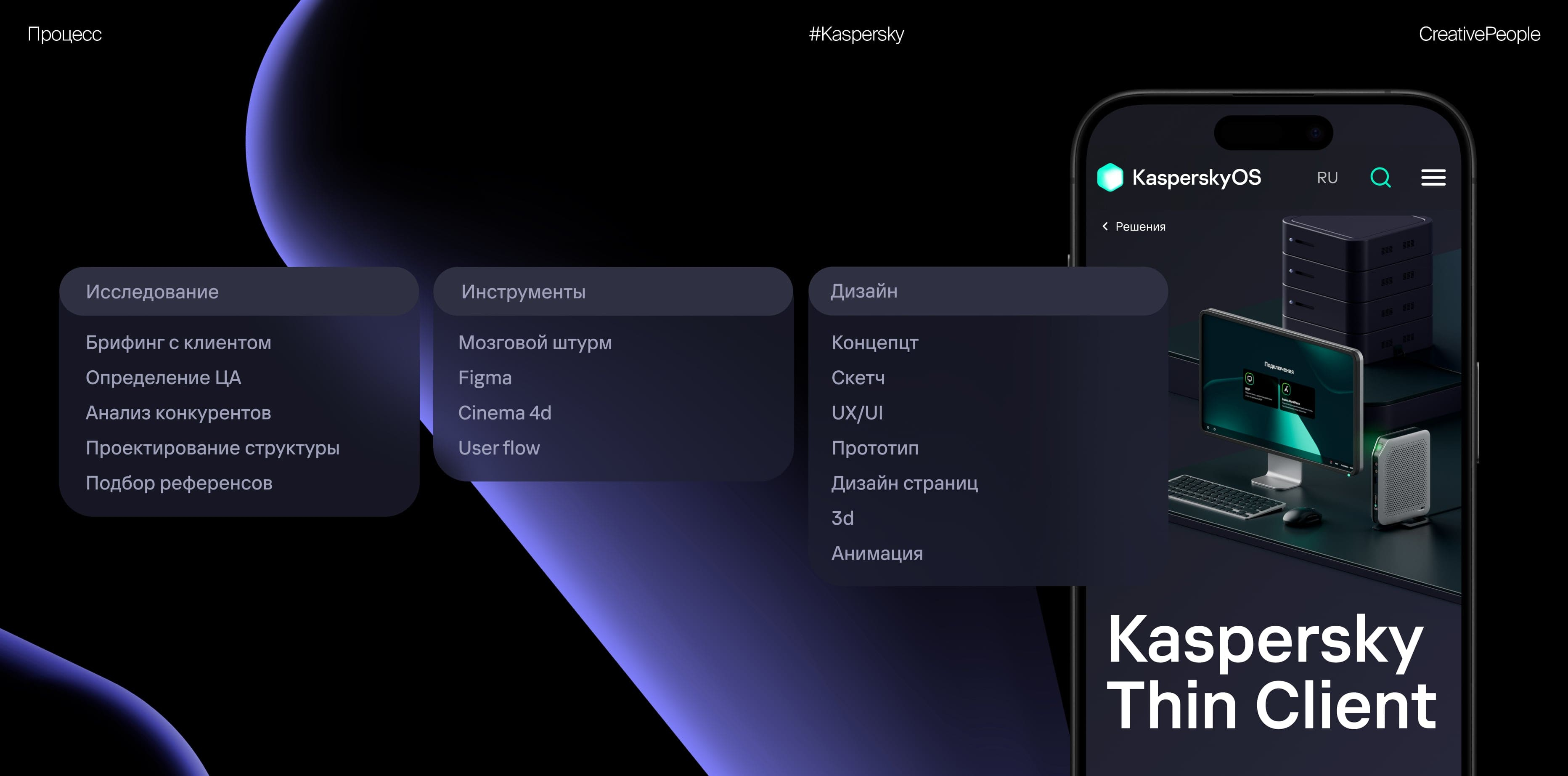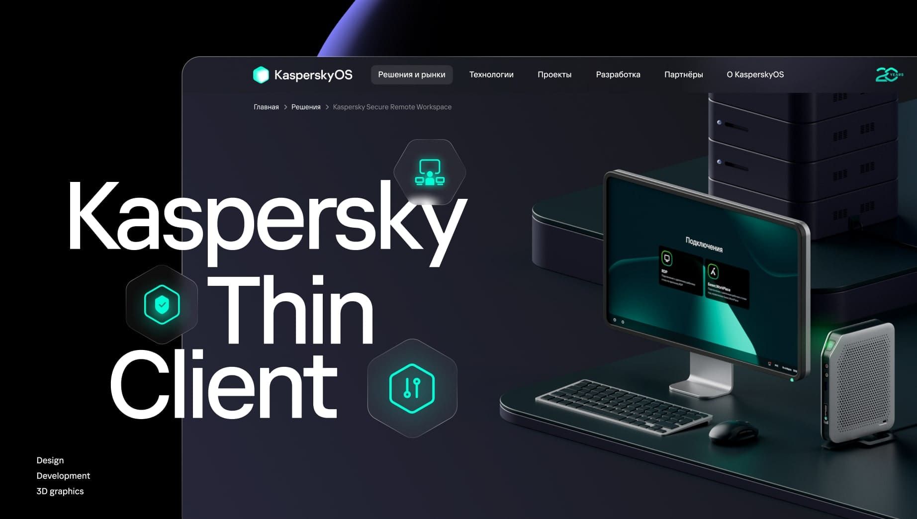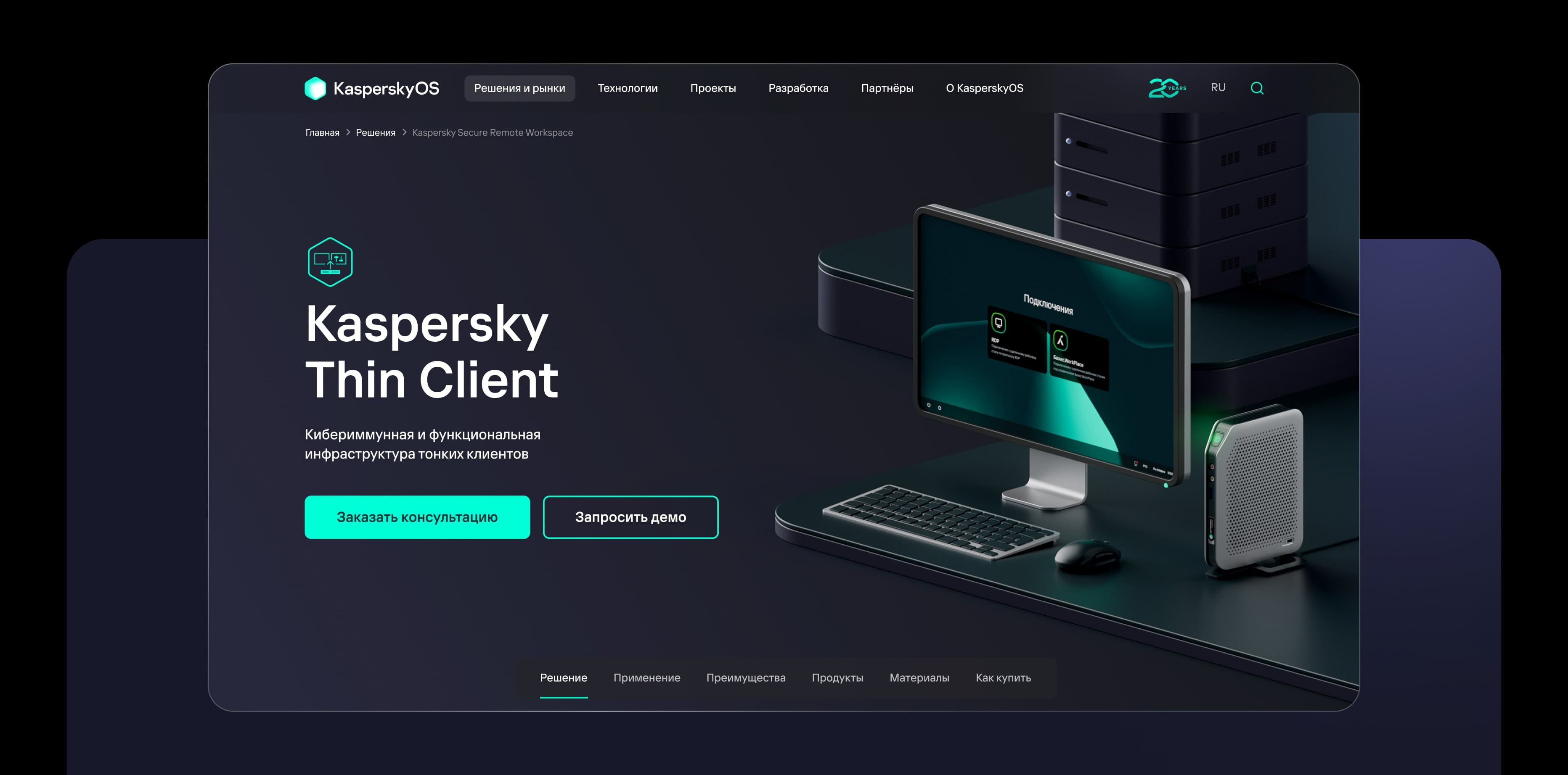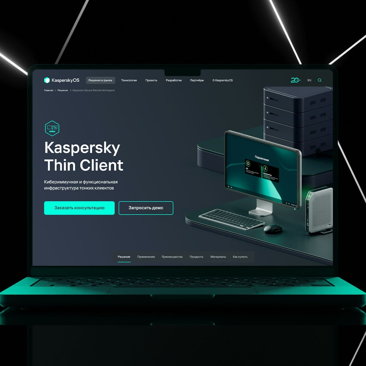 Наш клиент «Лаборатория Касперского» разрабатывает передовые решения в сфере кибербезопасности. Один из их продуктов — Kaspersky Thin Client. Это решение для создания управляемой и функциональной инфраструктуры тонких клиентов на основе микроядерной операционной системы KasperskyOS. Оно обеспечивает безопасное подключение к удалённым рабочим столам.