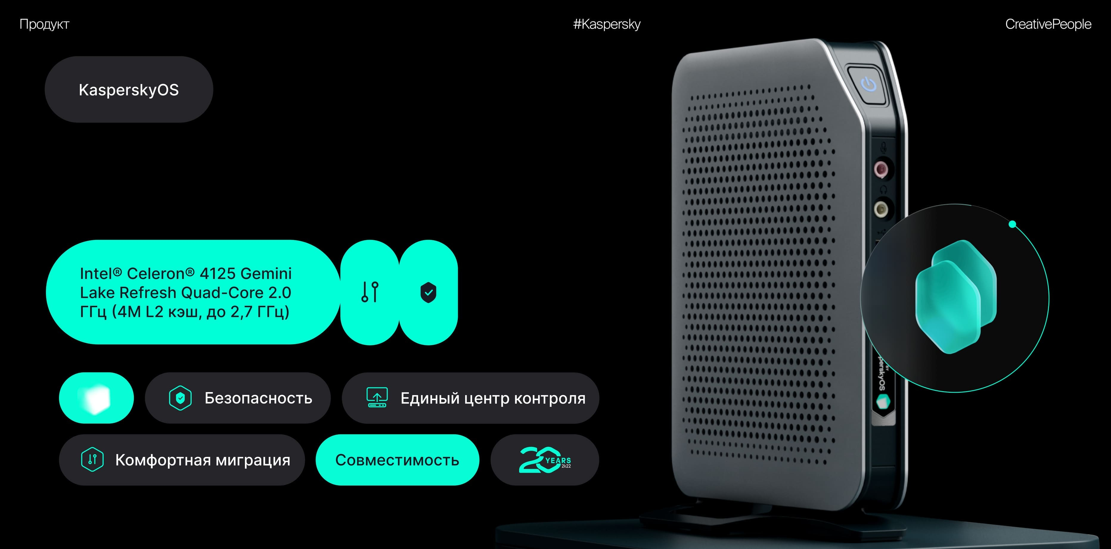 Нам важно было подчеркнуть, что тонкий клиент способен заменить множество персональных компьютеров при меньших затратах, обеспечивает защиту от вирусов и хакерских атак благодаря KasperskyOS и может принимать любое программное обеспечение, запущенное на сервере.