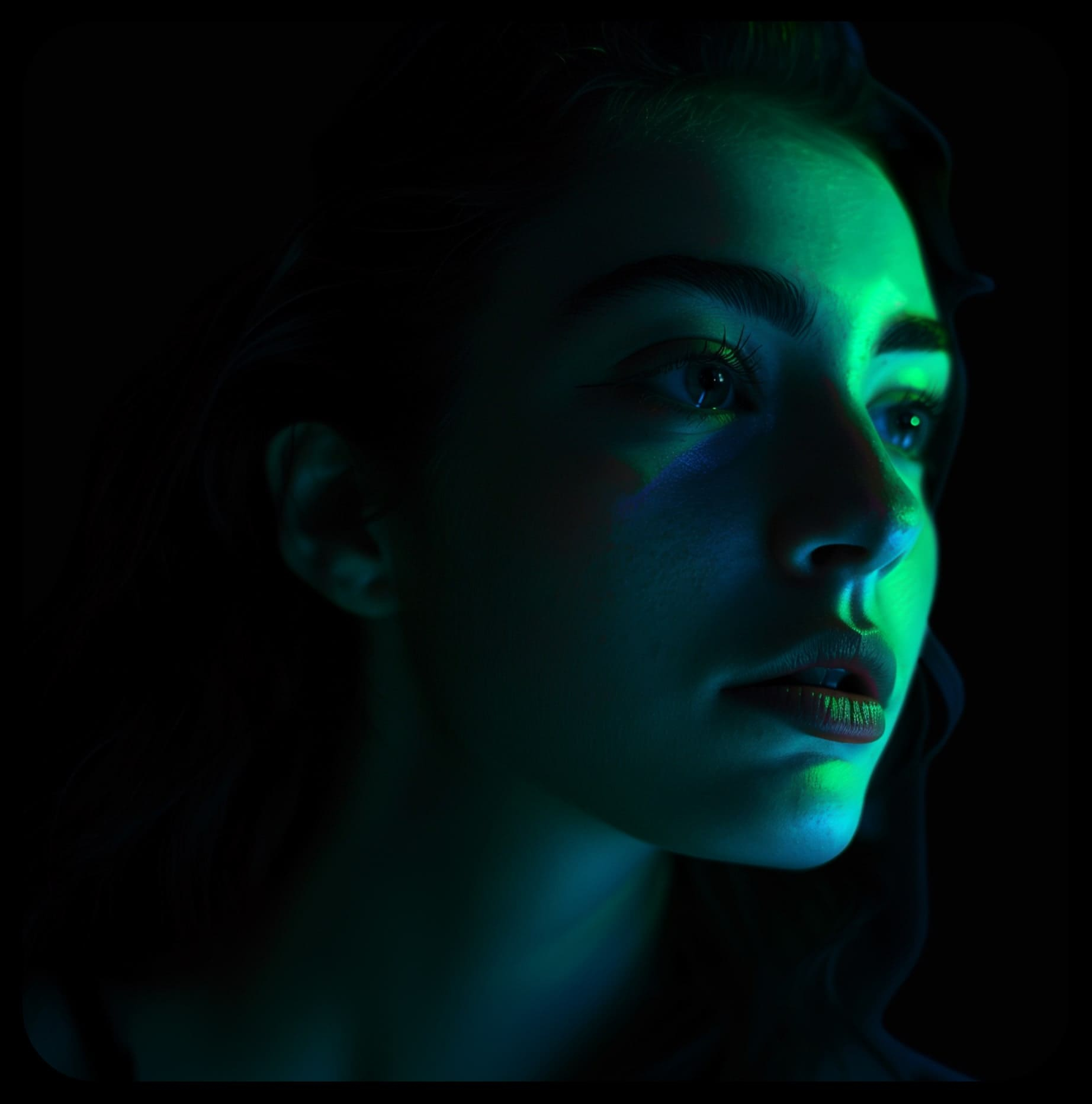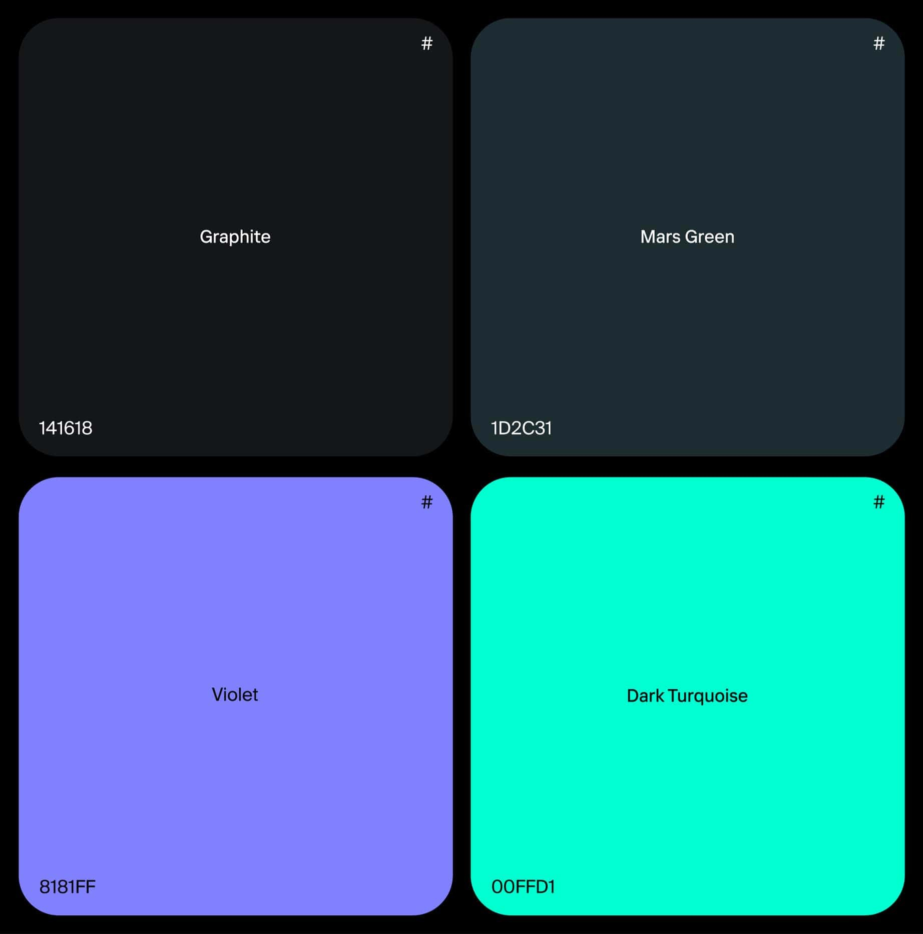 Мы остановили выбор на неоновых цветах, таких как графит, марсовый зелёный, тёмный бирюзовый и фиолетовый. Эти оттенки идеально соответствуют общей концепции нашего кейса, основанного на кибернетической эстетике. А также подчёркивают футуристический характер проекта, создавая атмосферу, которая передаёт идею высоких технологий и инноваций.