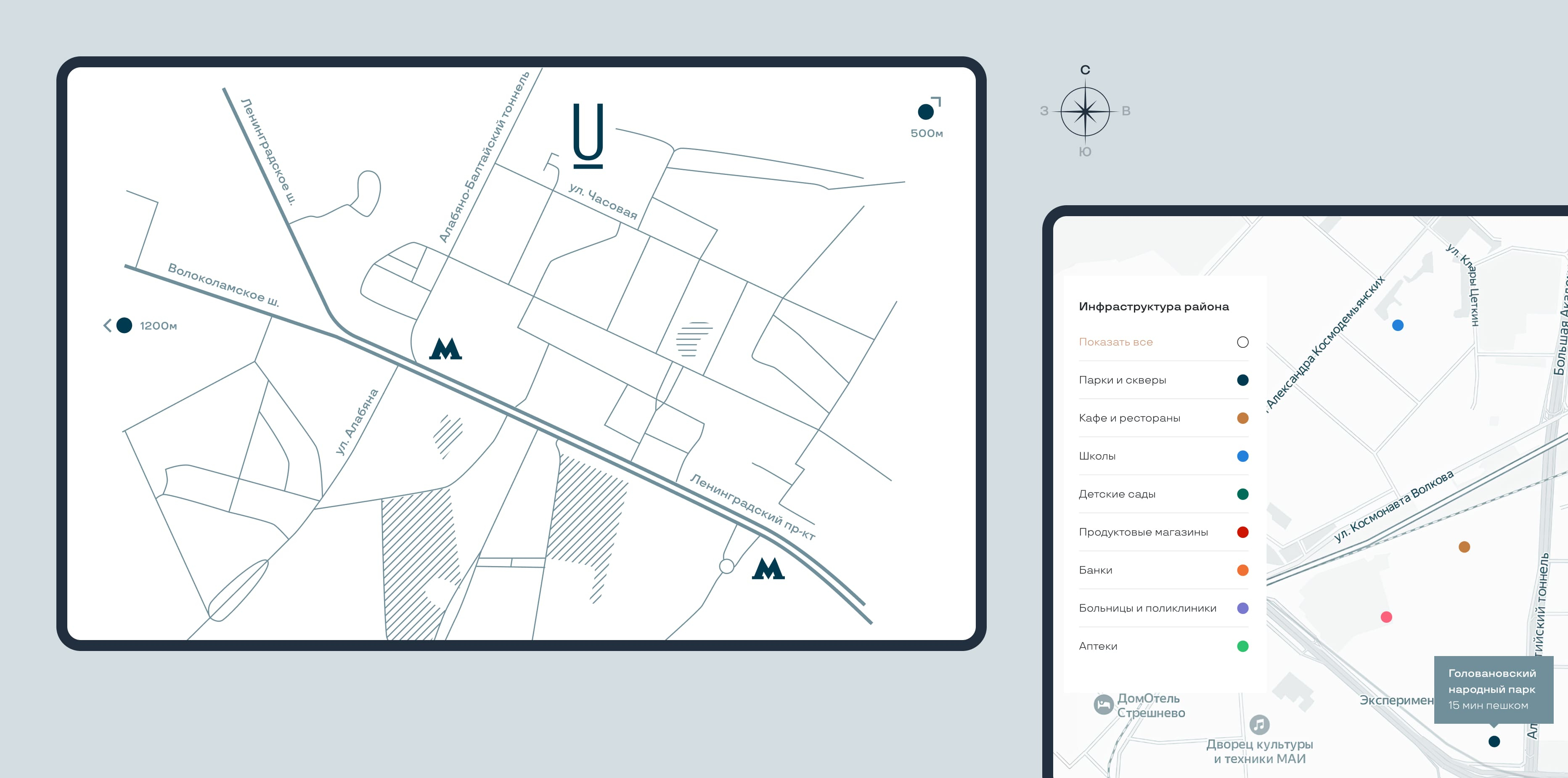 Сайт SOUL — это не просто презентация жилого комплекса, а настоящее интерактивное погружение в его атмосферу и окружение. Мы добавили детальную карту инфраструктуры, где отмечены школы, кафе, парки и другие важные объекты, чтобы пользователи могли оценить удобство локации и продуманность окружения.