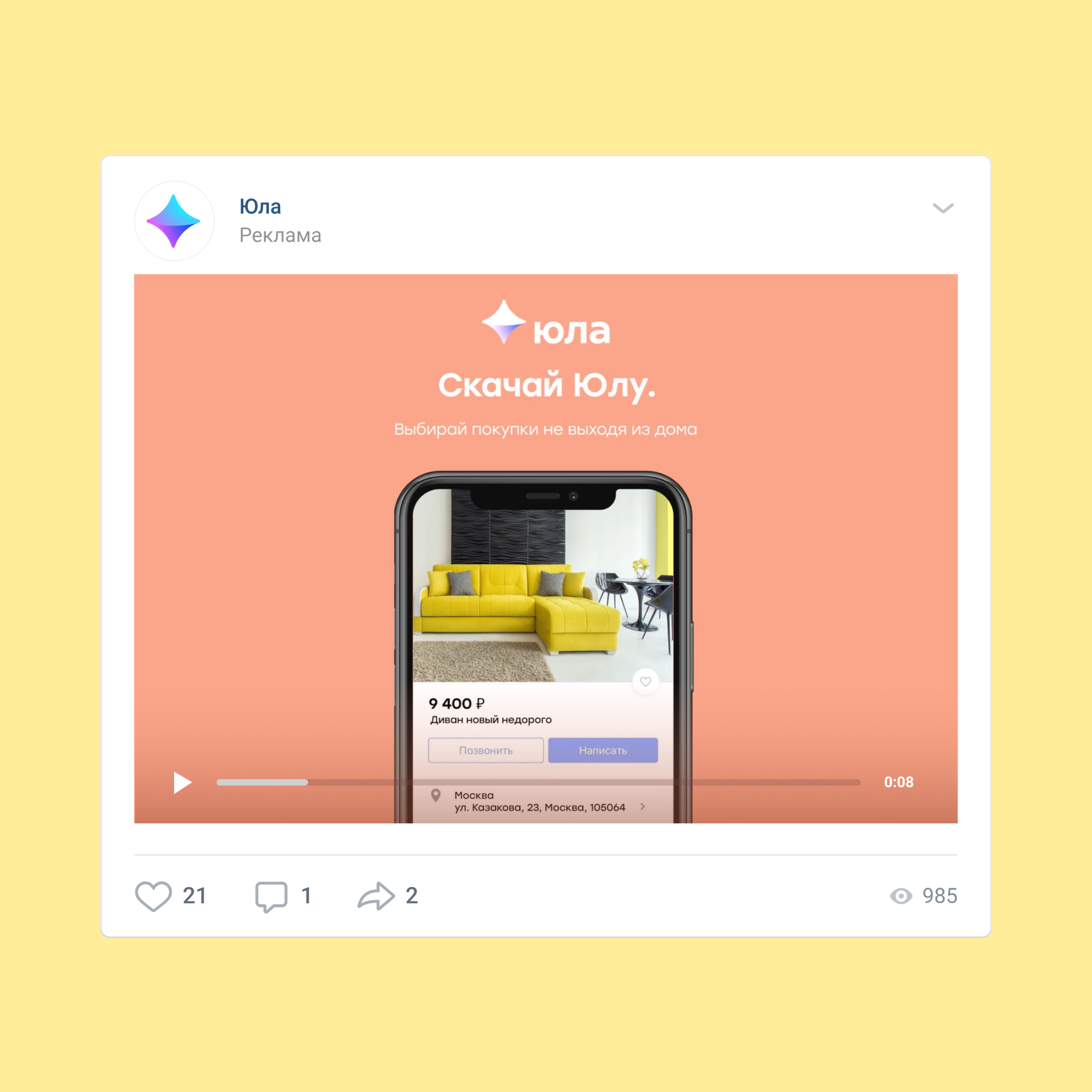 Нестандартная реклама «Юлы» формата stories в соцсетях.